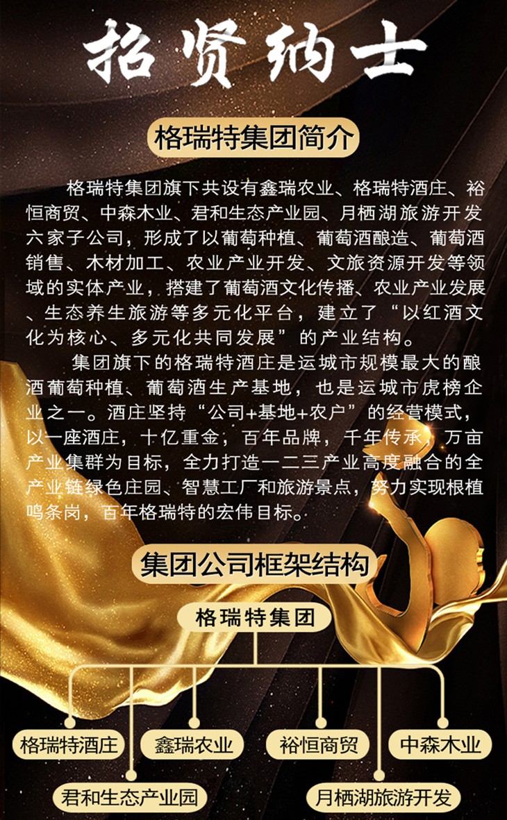 山西格瑞特酒莊有限公司成立于上世紀80年代,是一家集釀酒葡萄種植,釀酒生產(chǎn),農(nóng)業(yè)產(chǎn)業(yè)化,工業(yè)旅游化為一體