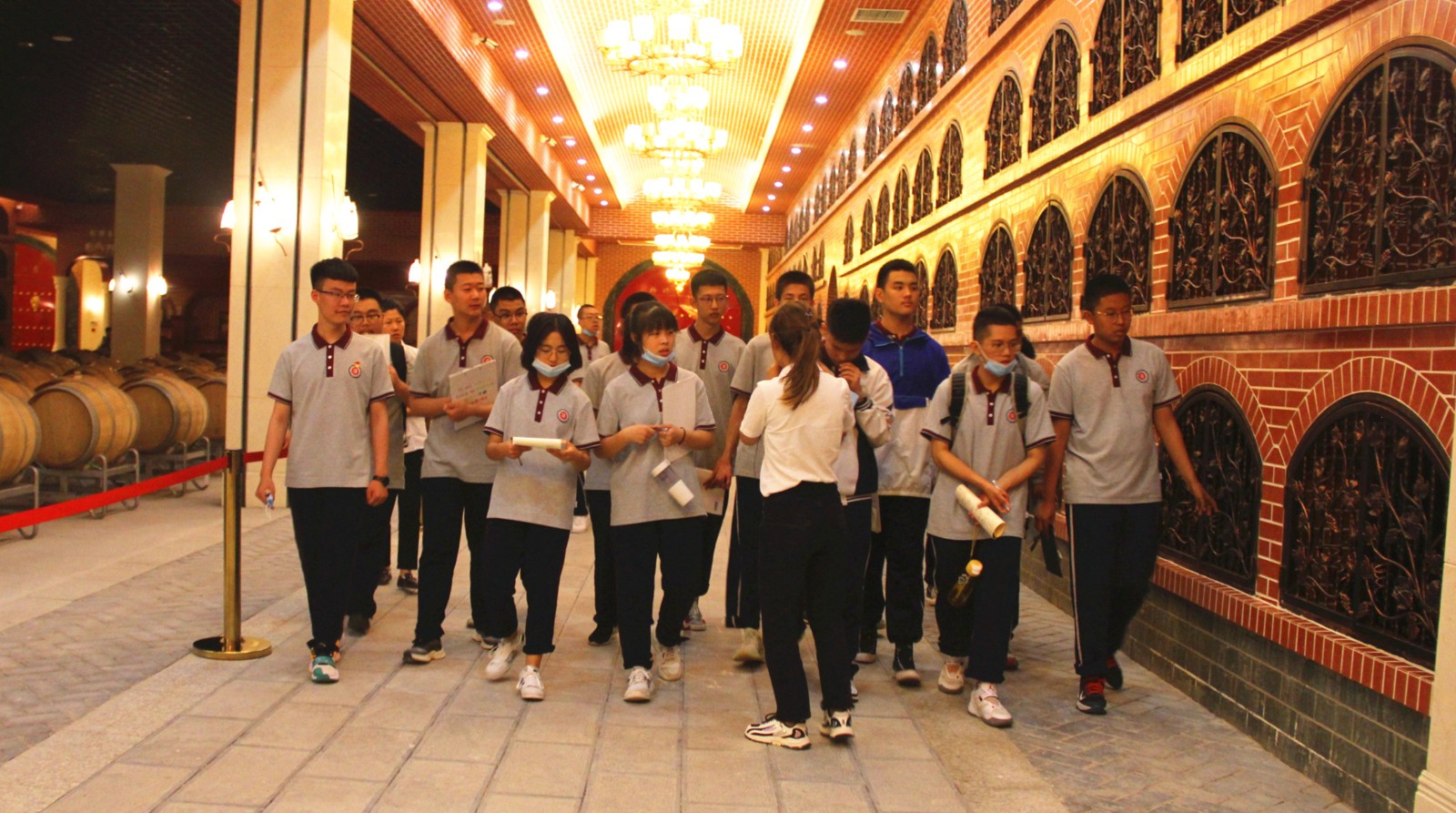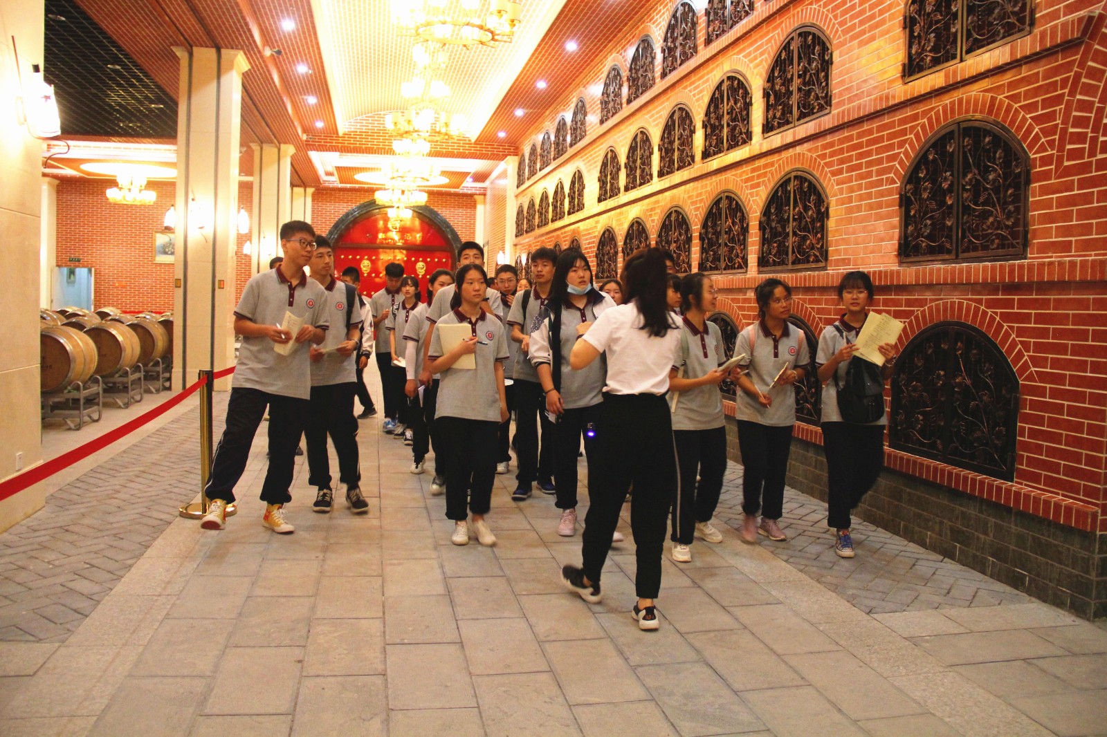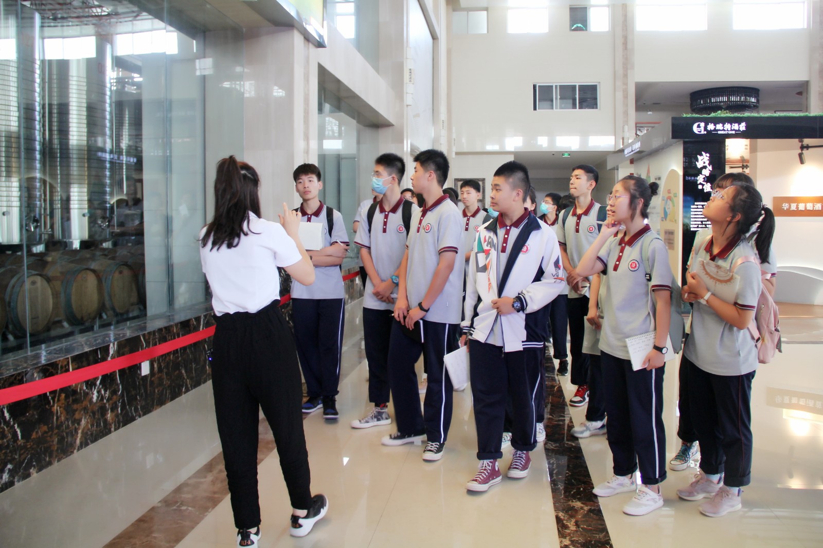 6月7日下午兩點(diǎn)半,東康一中的同學(xué)們和老師們來到格瑞特酒莊,進(jìn)行社會實(shí)踐活動。同學(xué)們被分成兩支隊(duì)伍,對酒莊內(nèi)的多處景觀進(jìn)行輪流參觀。