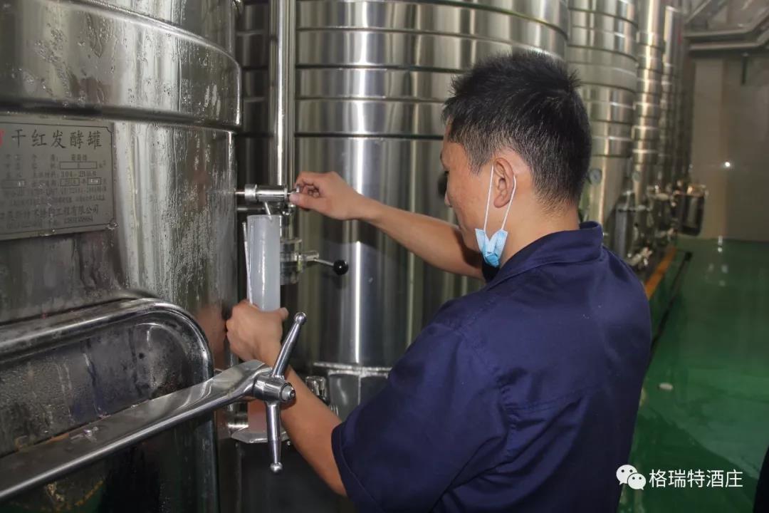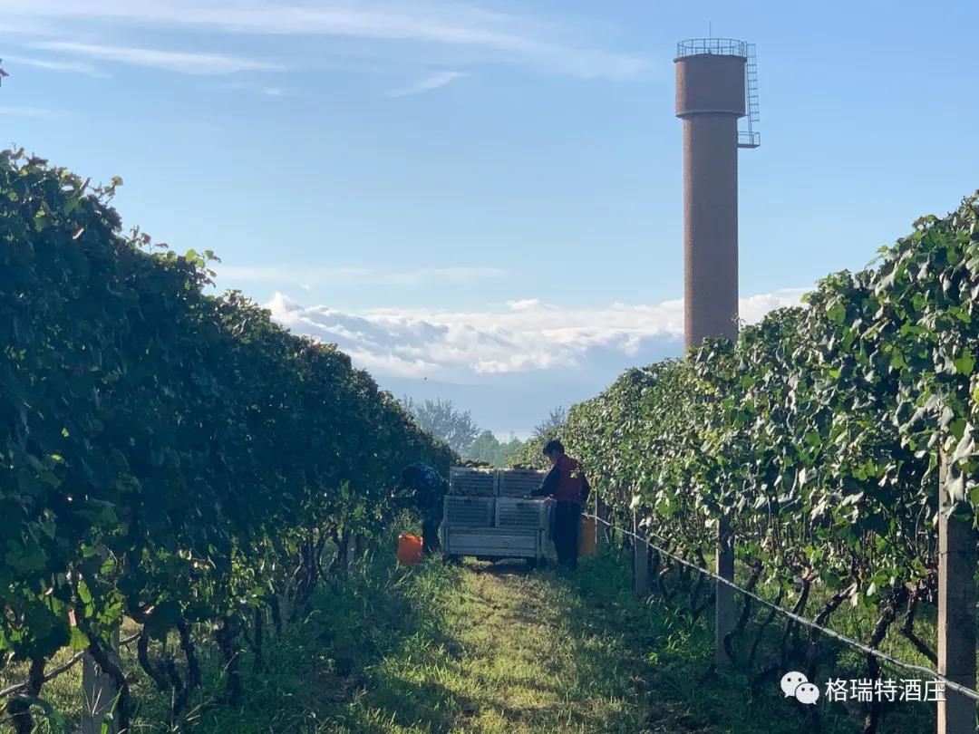 從采摘到進(jìn)罐發(fā)酵,整個(gè)過程是即時(shí)和快捷的,格瑞特酒莊能做到這一點(diǎn),得益于酒莊+基地+農(nóng)戶的產(chǎn)業(yè)模式,園區(qū)內(nèi)如此大面積的葡萄種植園全部為酒莊自營(yíng),全標(biāo)準(zhǔn)化的園區(qū)設(shè)計(jì)為機(jī)械化操作打下了堅(jiān)實(shí)基礎(chǔ),統(tǒng)一的種植管理規(guī)范和操作技術(shù)要求以及持續(xù)不斷的技術(shù)培訓(xùn)工作,既保證了葡萄的高品質(zhì),又踐行了那句土地變綠色工廠,農(nóng)民轉(zhuǎn)產(chǎn)業(yè)工人的企業(yè)愿景。