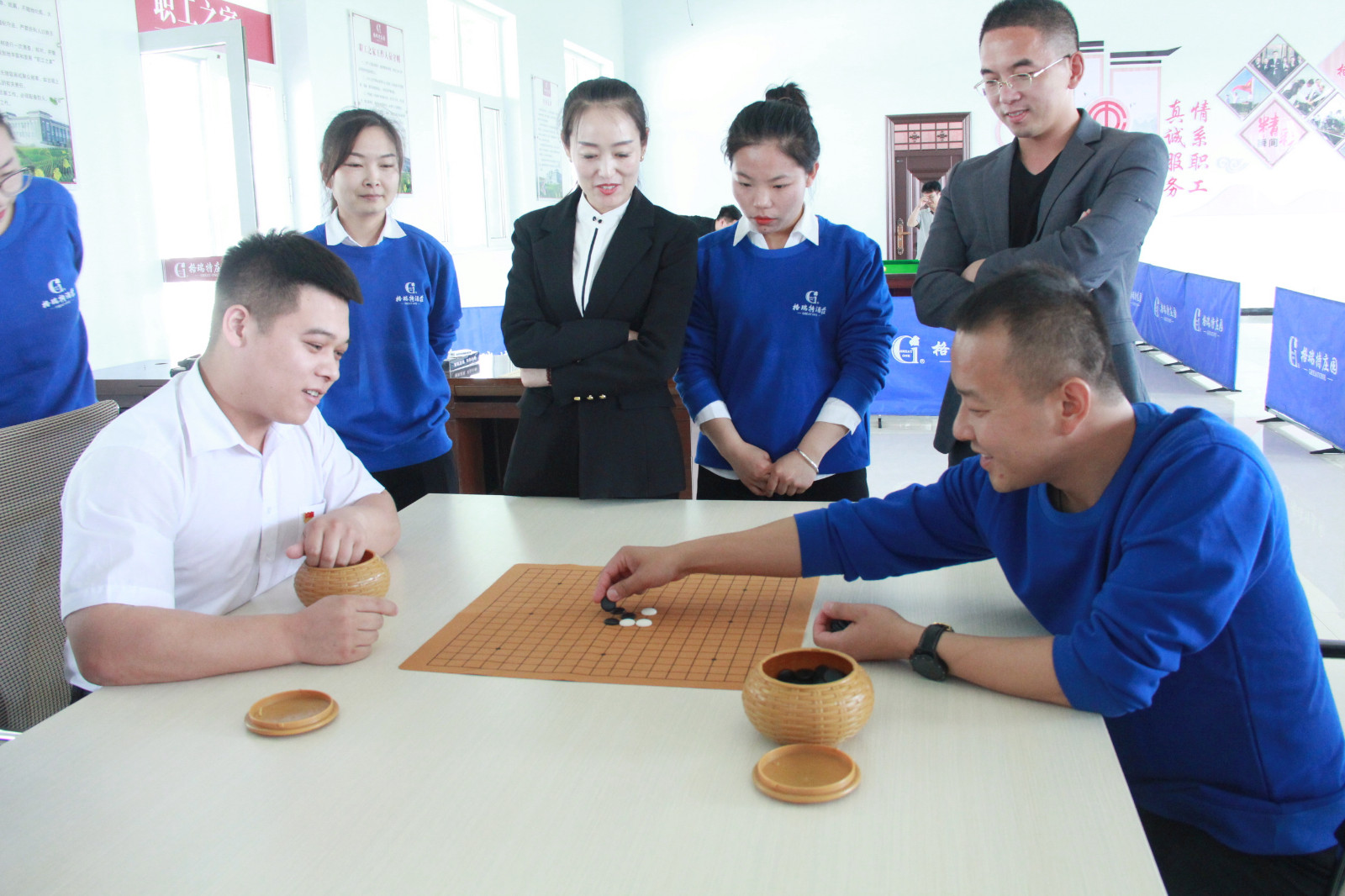 2022年5月7日上午10:00,格瑞特莊園職工之家舉行了“團結奮進·銳意進取”職工運動會第二場——五子棋比賽,賽前裁判長為參賽選手講解本次比賽規(guī)則。參賽選手們摩拳擦掌,躍躍欲試。